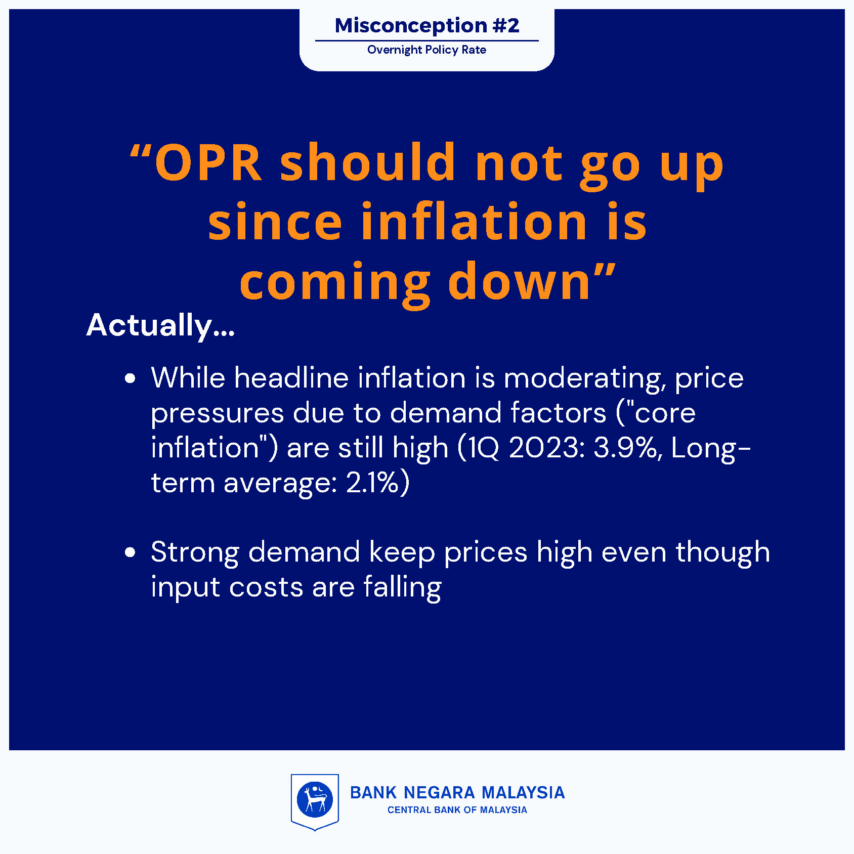- The MPC’s aim is to maintain low and stable inflation while promoting sustainable growth. Thus, when deciding on the OPR, we look at risks to both inflation and growth in Malaysia.