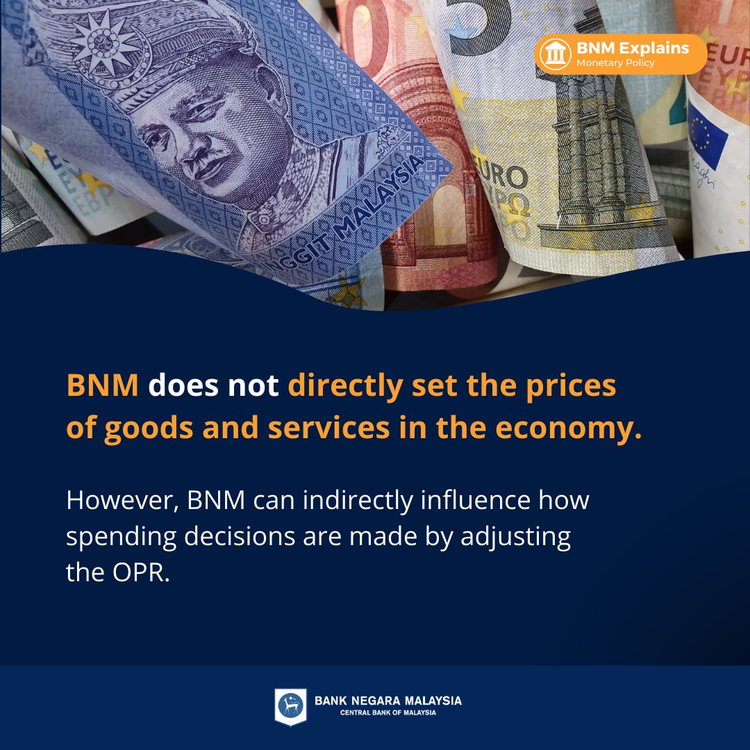 - Monetary policy is the action that Bank Negara Malaysia (BNM) takes to influence interest rates in the economy. As the central bank of Malaysia, BNM’s role is to promote monetary and financial stability. This is aimed at providing the conditions suitable for sustainable growth of the Malaysian economy. To achieve monetary stability, our Monetary Policy Committee (MPC) sets monetary policy to keep inflation low and stable while supporting economic growth.
